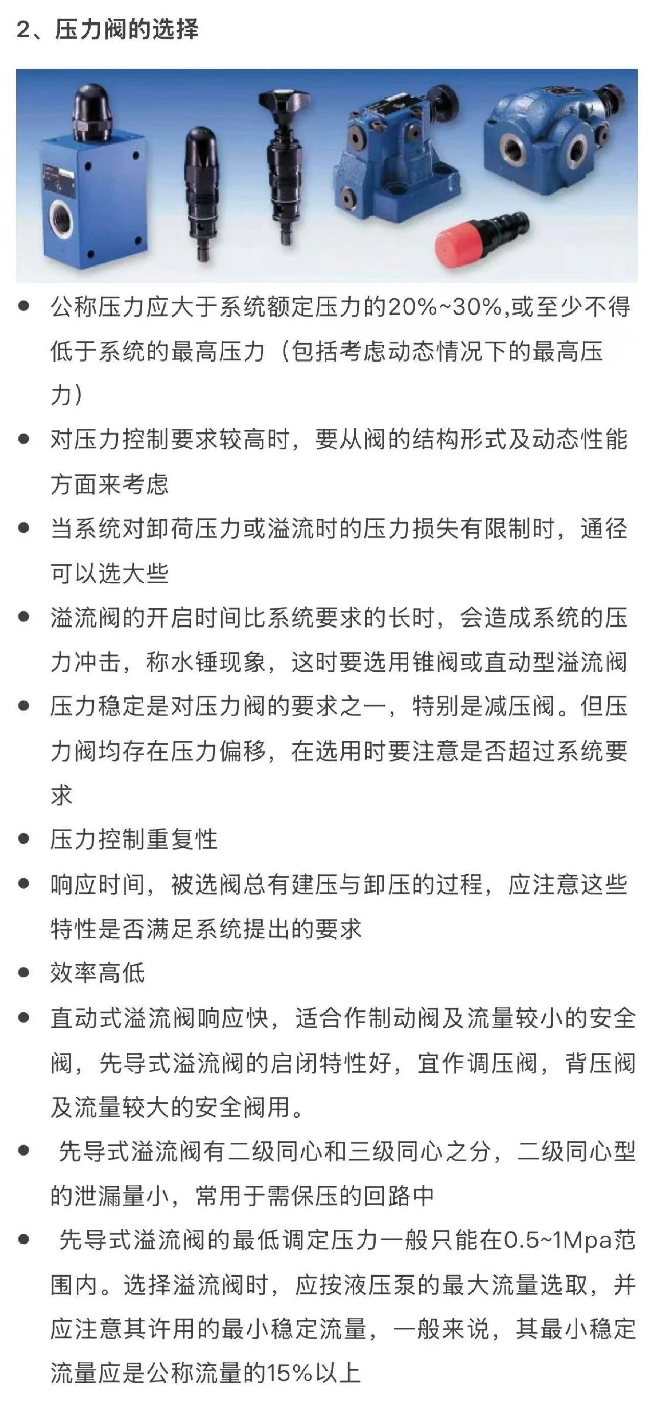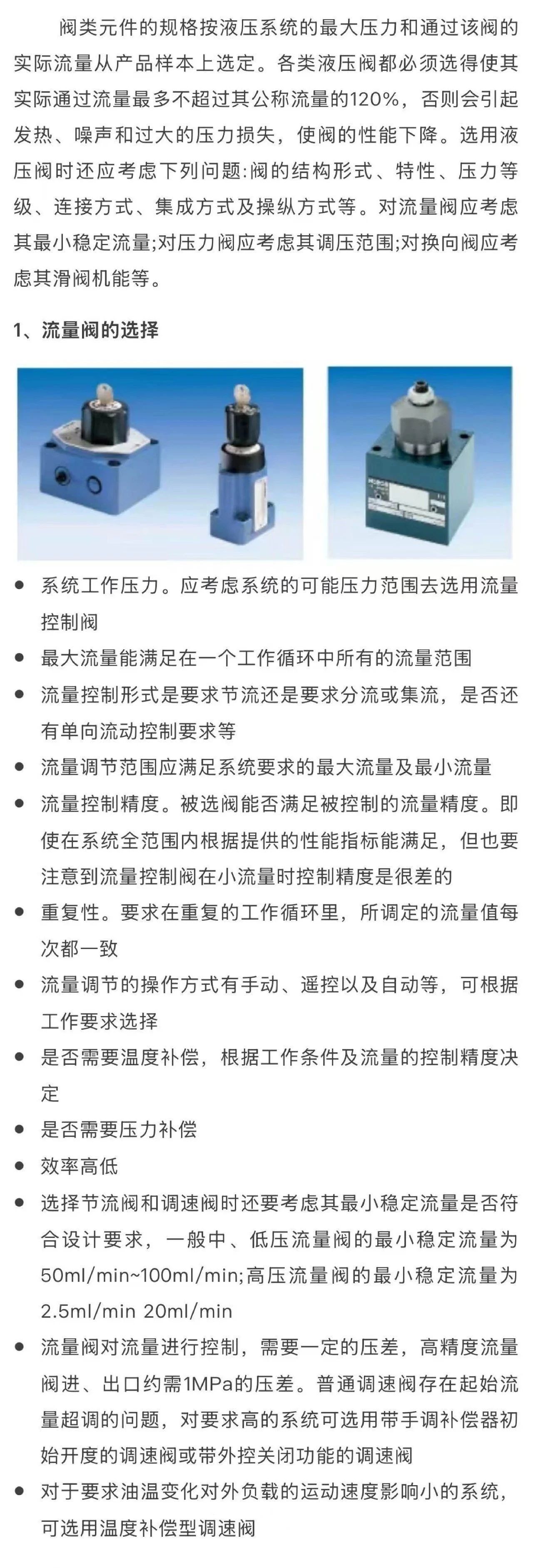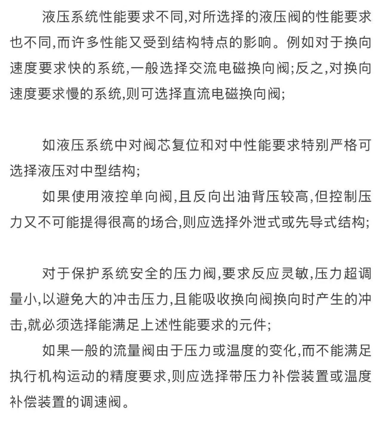 液壓閥的選型原則及要點