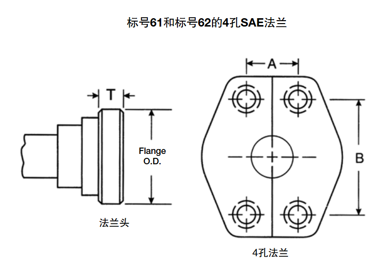 2.卡特比勒法蘭中,法蘭外徑同SAE標號62相同,但是法蘭頭更厚,