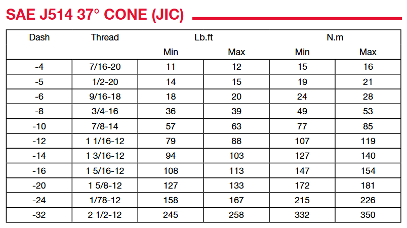 軟管接頭和過渡接頭安裝扭矩推薦表