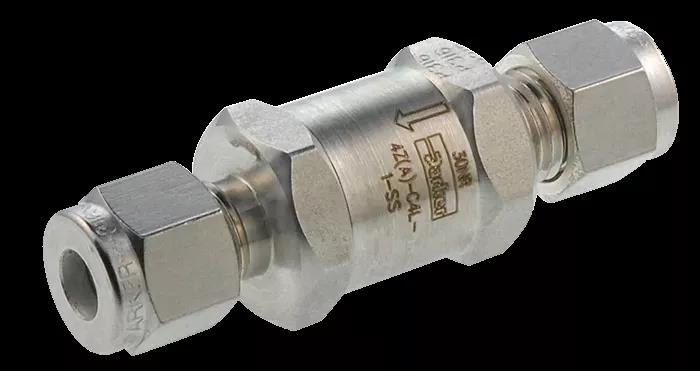 同時,客戶還選用了CO系列單向閥,該閥適用于需要嚴格消除逆流的清潔工況和氣體應用,尤其適用于小分子量氣體的應用,是市場上為數不多的一款公布氦檢漏率的單向閥。