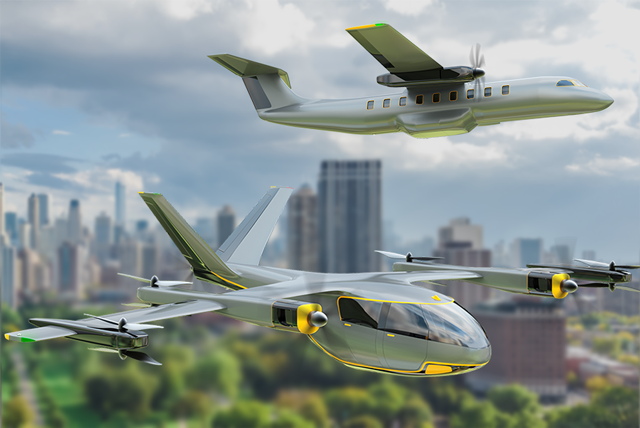 混合動(dòng)力AAM飛行器采用機(jī)載發(fā)電設(shè)備(例如氫燃料電池或小型燃?xì)廨啓C(jī))產(chǎn)生電力,供推進(jìn)系統(tǒng)和飛控系統(tǒng)、環(huán)控系統(tǒng)、電剎車(chē)和其他附件使用。區(qū)別于小區(qū)域內(nèi)短途空中交通,混動(dòng)飛行器更適合短途城際航線,可采用傳統(tǒng)固定翼飛機(jī)的起落模式或垂直起降模式。混動(dòng)飛行器或能為節(jié)能減排做出巨大貢獻(xiàn),是航運(yùn)市場(chǎng)從傳統(tǒng)動(dòng)力飛機(jī)向全電飛機(jī)發(fā)展的重要過(guò)渡。