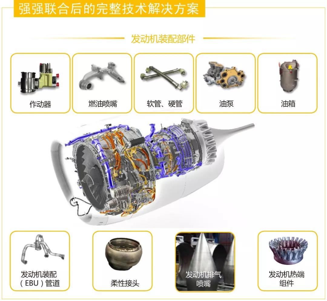 Exotic Metals先進的金屬管路、發動機熱端組件、發動機裝配(EBU)產品將與派克宇航集團現有的發動機、機體產品融合,使宇航集團的技術覆蓋EBU流體管理、飛機氣動、滑油、液壓、燃油、油箱惰化、飛行控制等各類機載系統和部件。