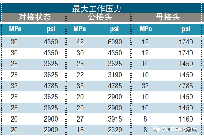 對(duì)接狀態(tài)的工作壓力&斷開狀態(tài)的工作壓力